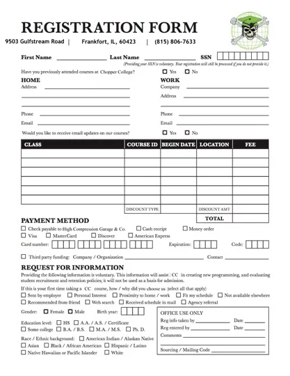 Fill out the registration form and text to us. A Chopper College representative will contact you after processing your information.